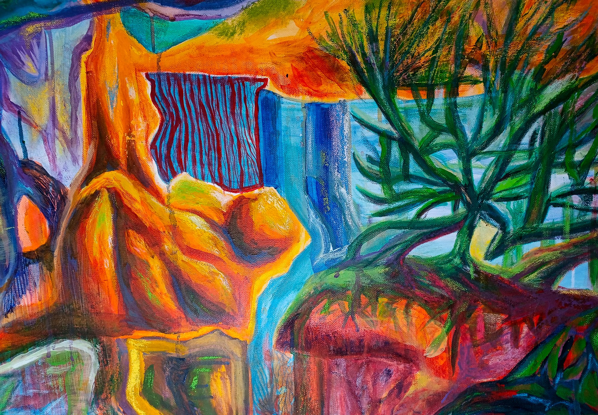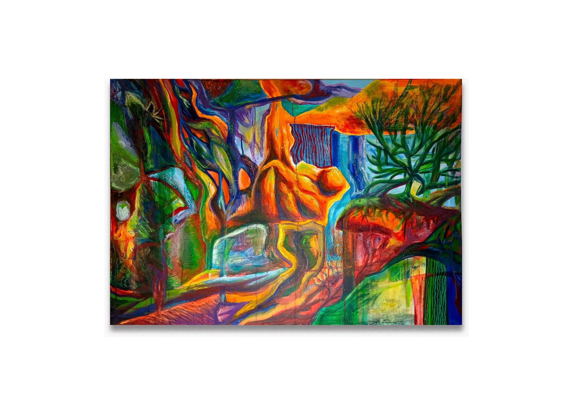 Peinture acrylique, pastel et crayons de couleurs sur toile, 65 x 91 cm, 2025 / Acrylic paint, pastel and colored pencils on canva, 65 x 91 cm, 2025